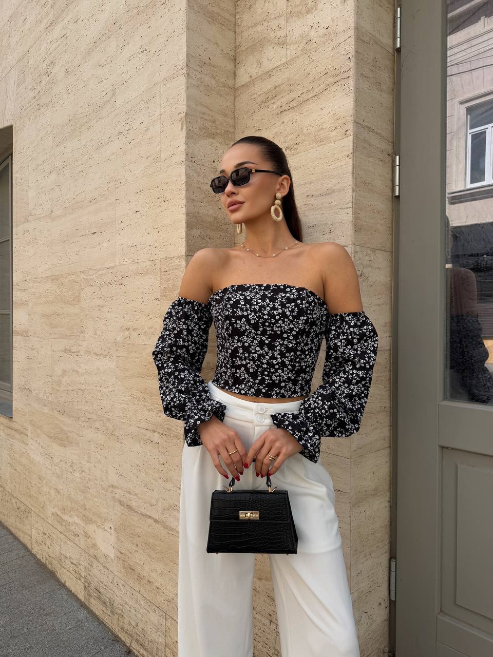 В нем хочется выходить в свет, флиртовать, смеяться и собирать восторженные взгляды. Ткань держит форму, рукава придают легкости, а шнуровка — деталь, придающая загадочности.