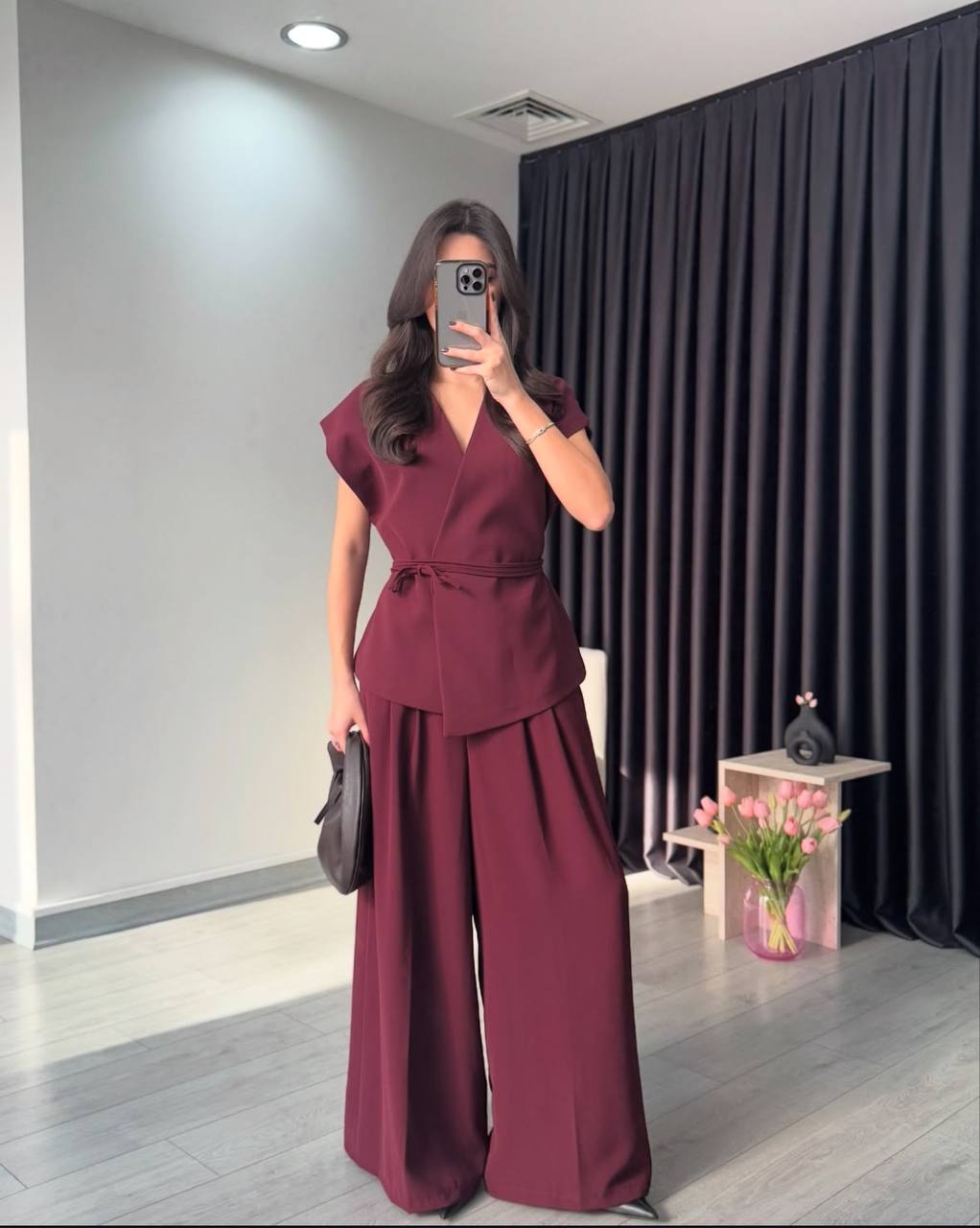Женский Костюм 2-ка: жилетка-блуза+штаны марсала