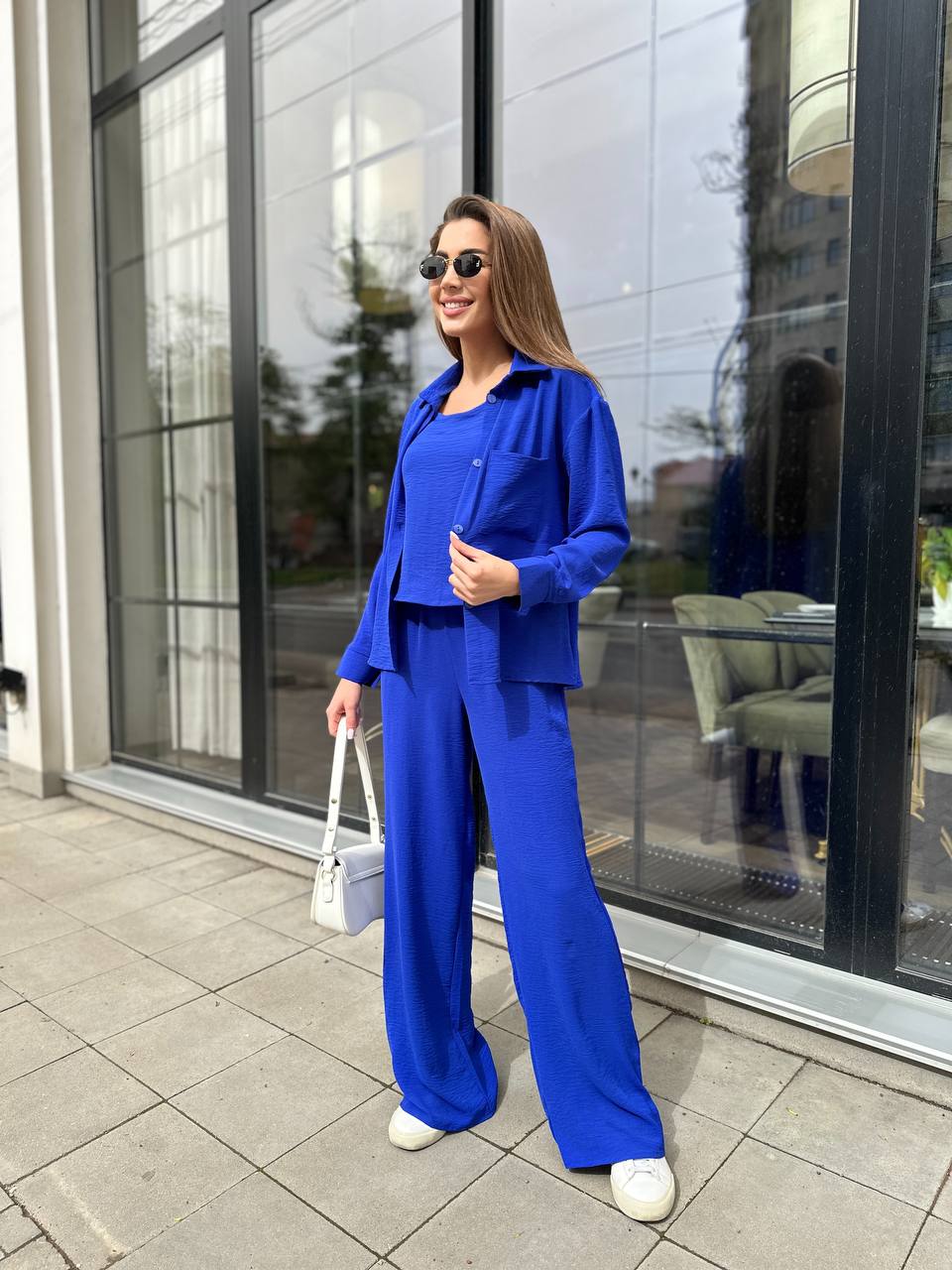Будьте першим, хто залишив відгук “Женский костюм 3-ка: Брюки, майка и рубашка на пуговицах синий”“