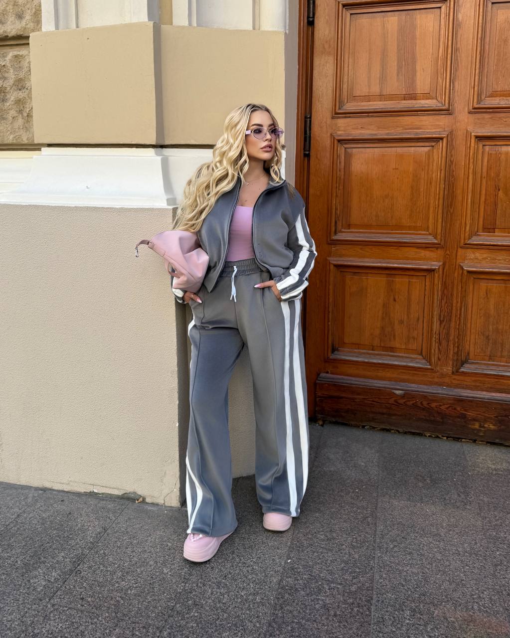 Женский костюм: Брюки палаццо с затяжками+кофта на молнии графит