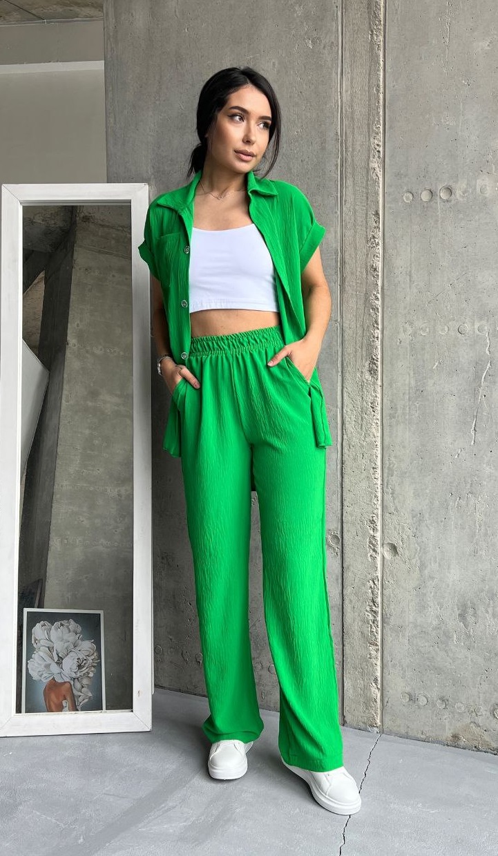Женский костюм двойка рубашка с коротким рукавом и брюки зеленый
