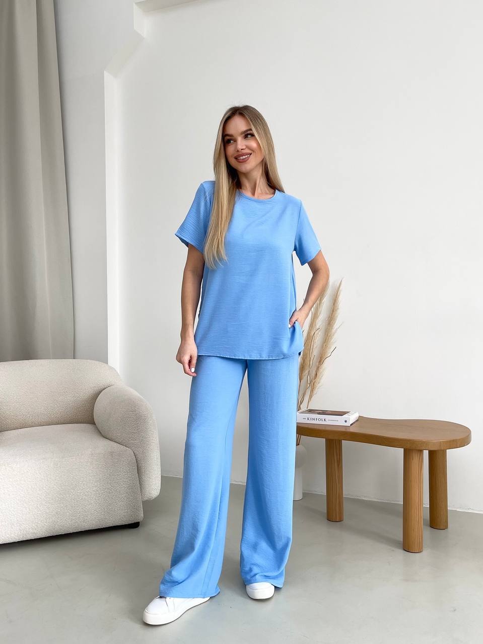 Женский костюм: футболка+штаны (креп жатка) голубой