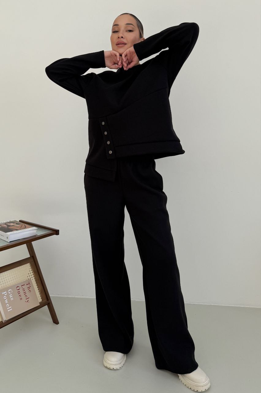 Женский костюм из ангоры (брюки палаццо высокая посадка+кофта с кнопками) черный