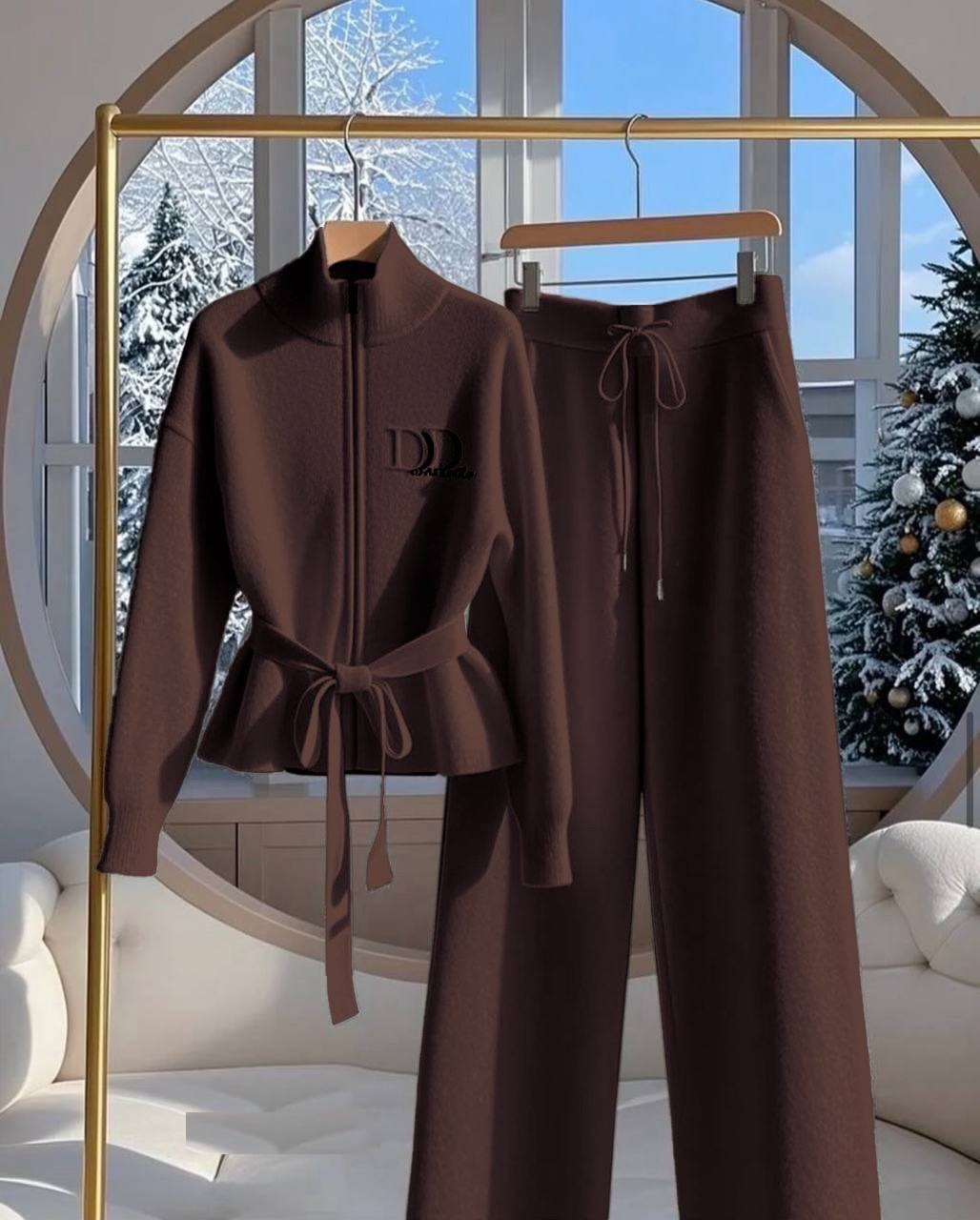 Головна » Магазин » Одяг » Жіночі костюми » Женский костюм: кофта на молнии с поясом+прямые штаны (Ангора) шоколад