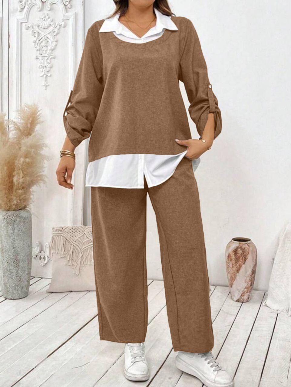 Женский костюм: кофта-рубашка+свободные штаны (двухсторонняя ангора) мокко