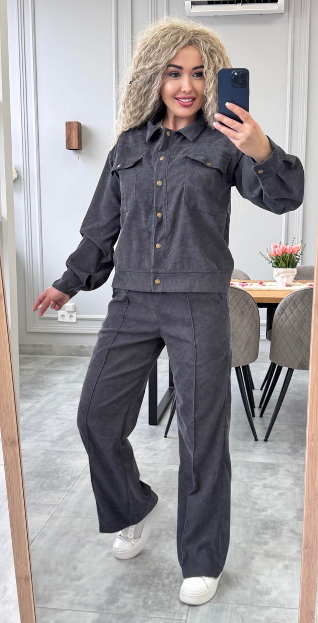 Головна » Магазин » Одяг » Жіночі костюми » Женский костюм: рубашка на кнопках+штаны (микровельвет) графит