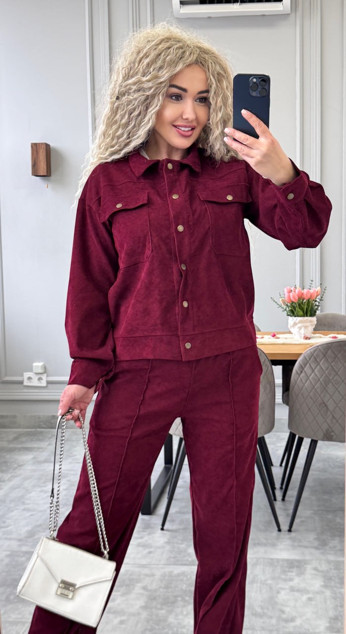 Головна » Магазин » Одяг » Жіночі костюми » Женский костюм: рубашка на кнопках+штаны (микровельвет) бургунди