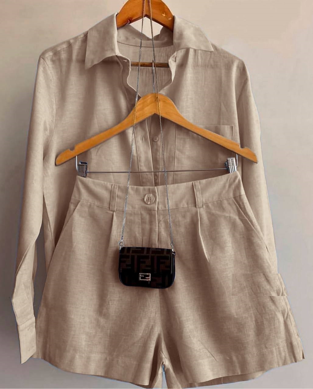 Головна » Магазин » Одяг » Жіночі костюми » Женский костюм: рубашка с воротником+шорты (лен) беж