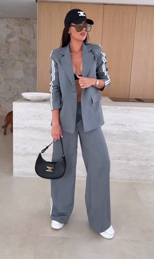 Головна » Магазин » Одяг » Жіночі костюми » Женский костюм с лампасами (пиджак+брюки) серый