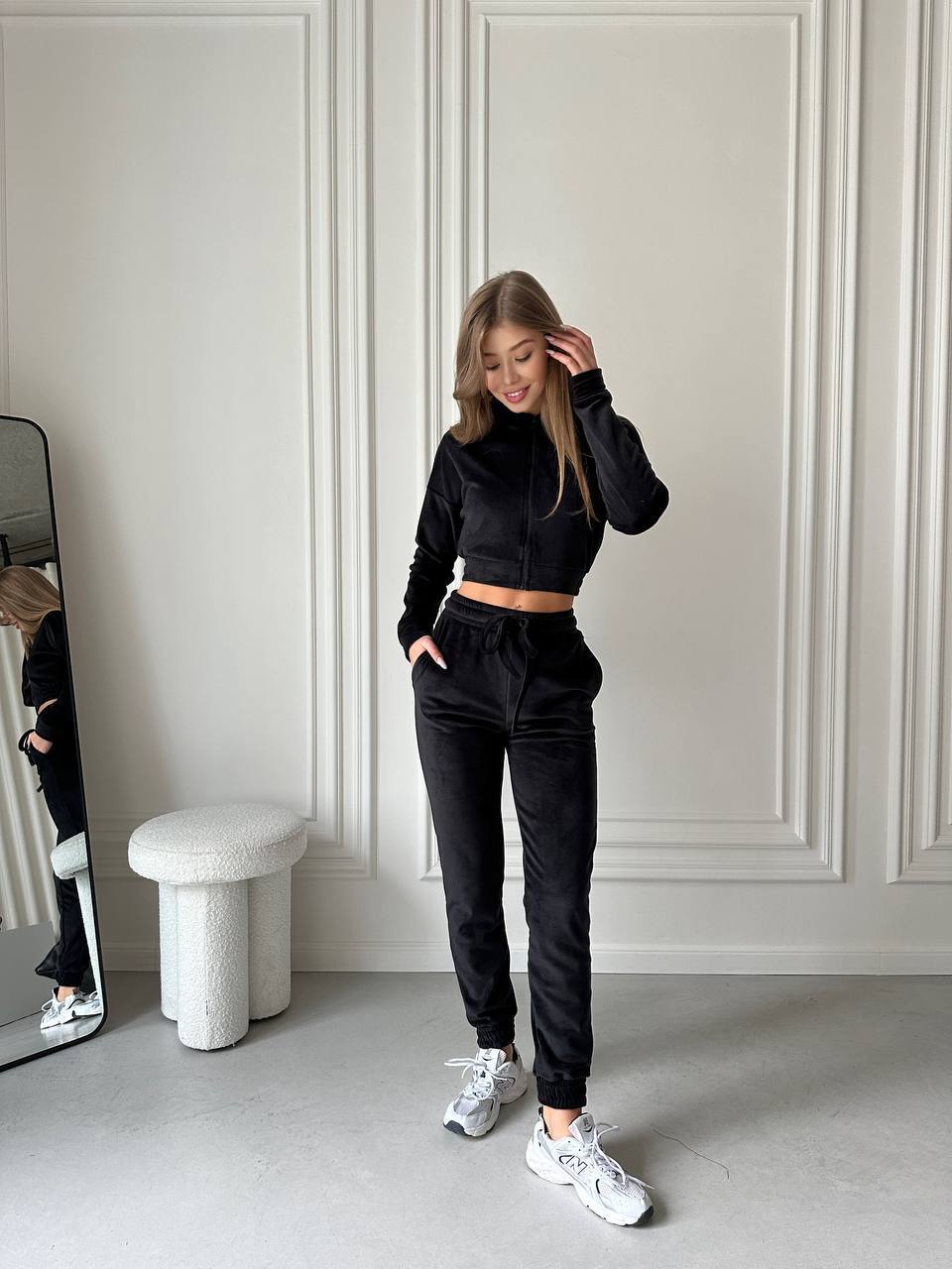 Будьте першим, хто залишив відгук “Женский костюм : укороченная кофта и джогеры (велюр на меху) черный”“