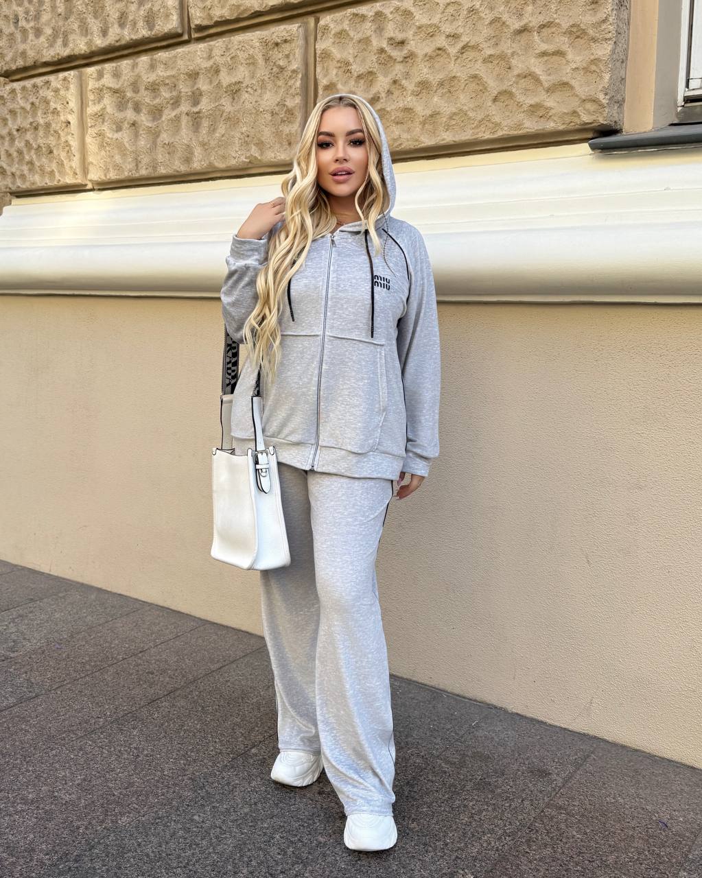 Будьте першим, хто залишив відгук “Женский костюм велюр: Брюки палаццо прямые+кофта на молнии с карманами светло-серый”“