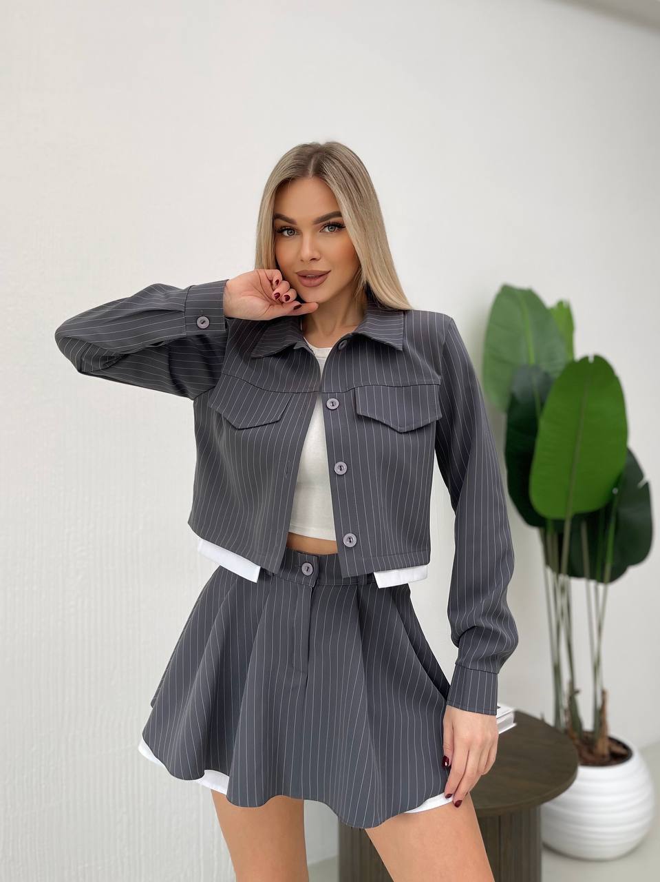Головна » Магазин » Одяг » Жіночі костюми » Женский Костюм (жакет на пуговицах и юбка-шорты) серый