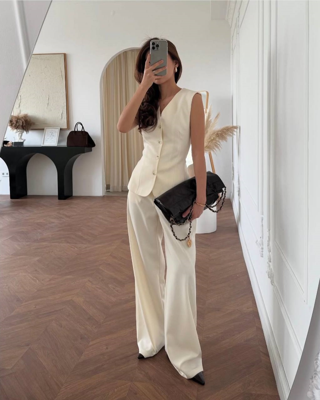 Жилет застегивается на пуговицы по переду и регулируется завязками по спинке.