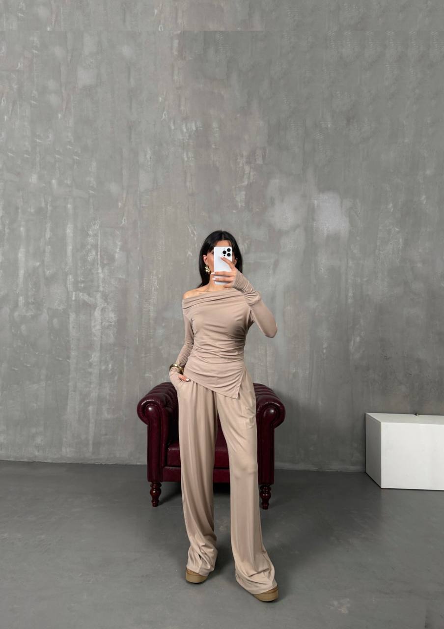 Головна » Магазин » Одяг » Жіночі костюми » Женский Костюмчик повседневный (кофта+свободные брюки) беж