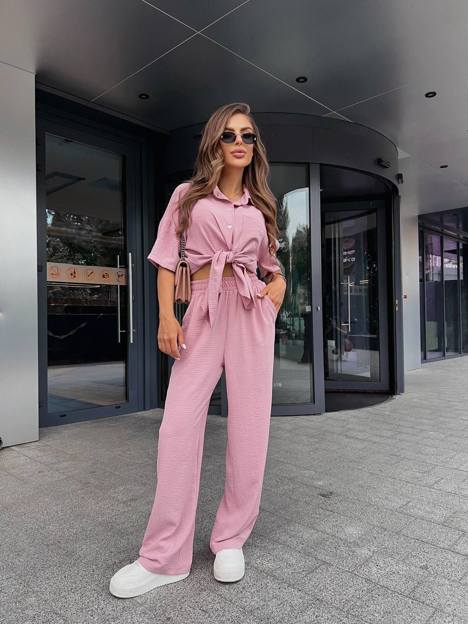 Будьте першим, хто залишив відгук “Женский легкий костюм: Рубашка на пуговицах с коротким рукавом+Брюки с карманами пудра”“