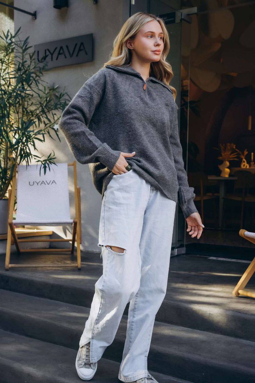 Будьте першим, хто залишив відгук “Женский свитер поло с вышивкой “ALO” графит”“