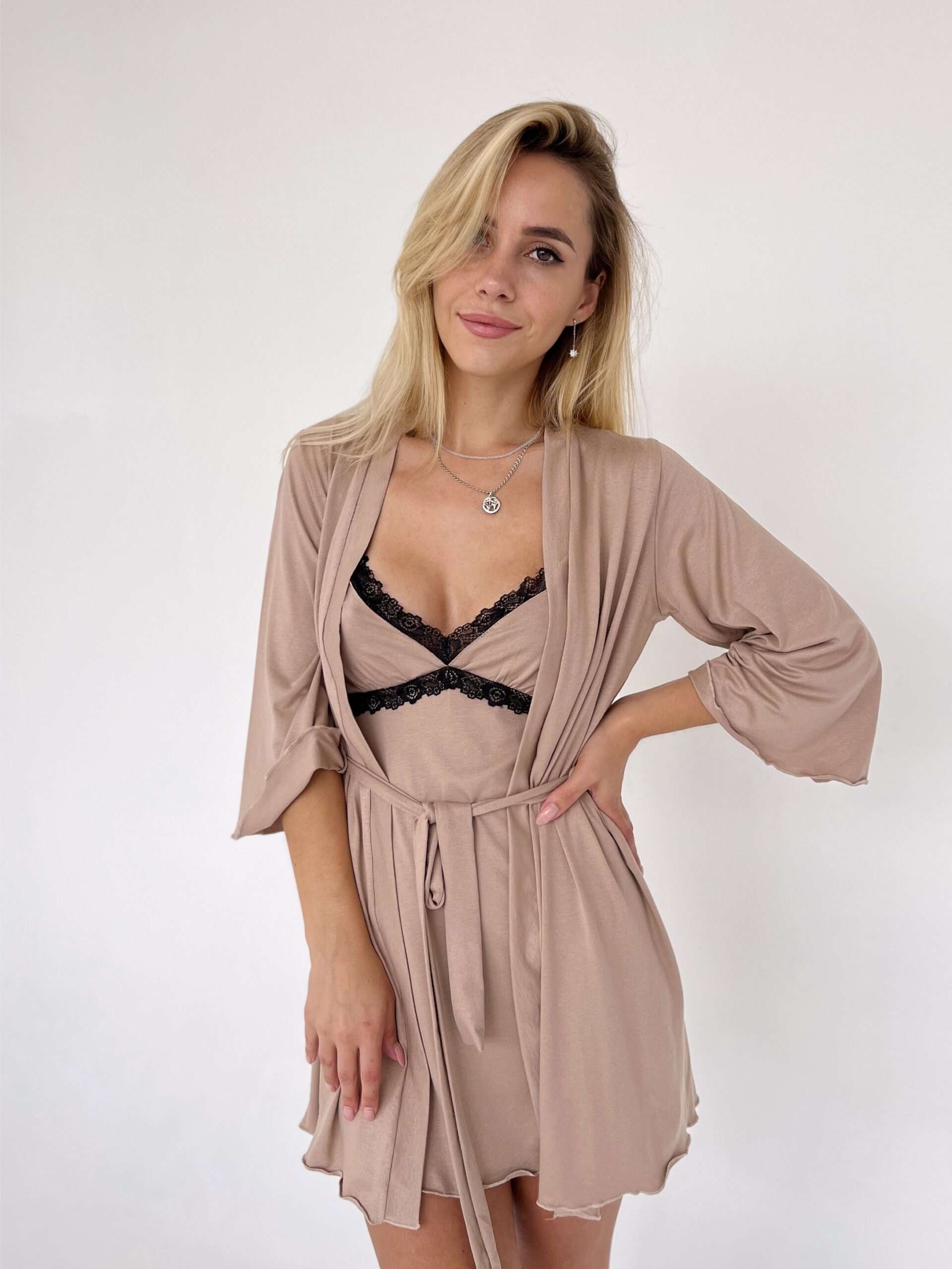 Будьте першим, хто залишив відгук “Женский трикотажный комплект пеньюар с халатом, мокко”“