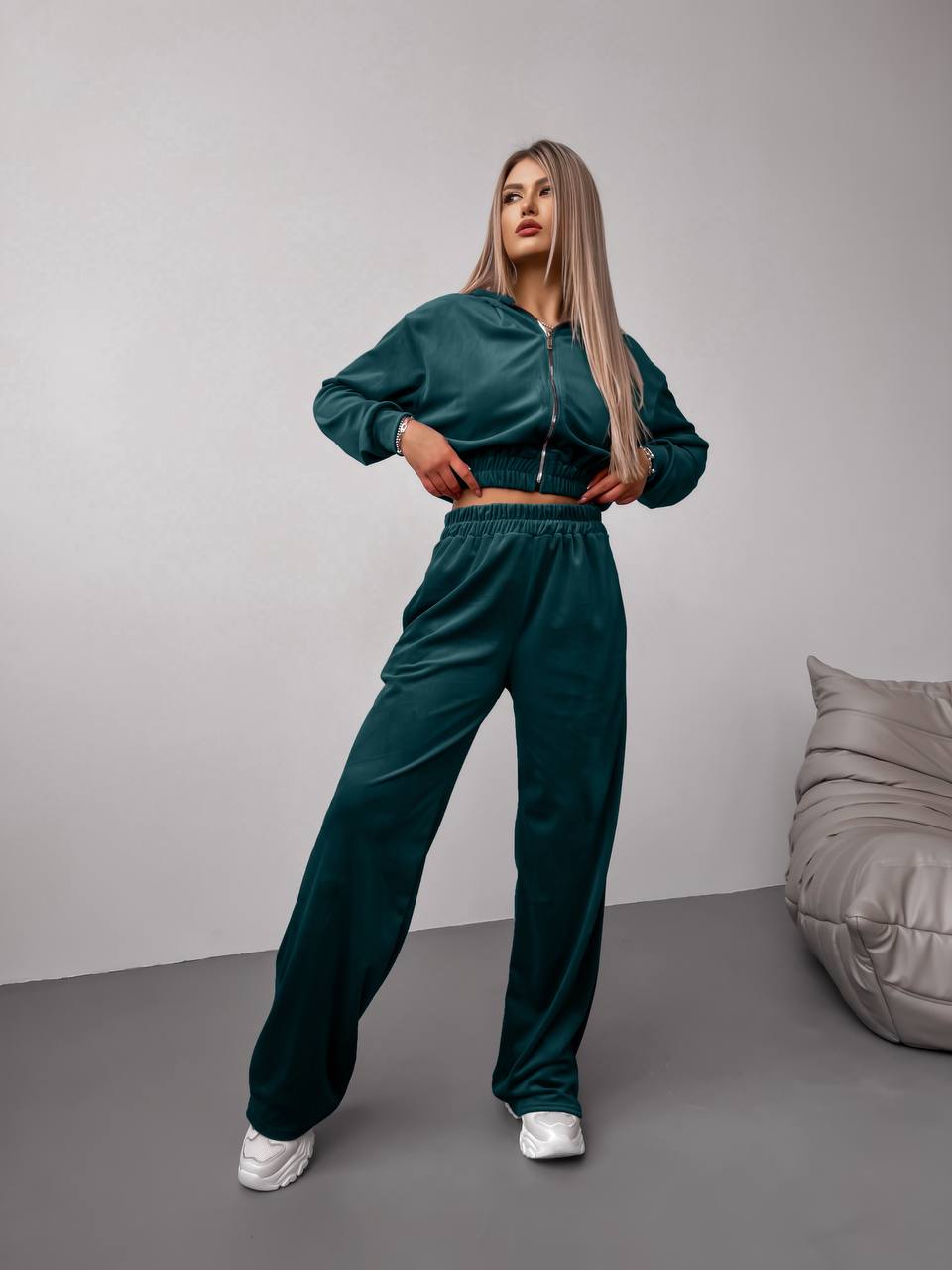 Будьте першим, хто залишив відгук “Женский велюровый костюм двойка: кофта с капюшоном+брюки с карманами изумруд”“