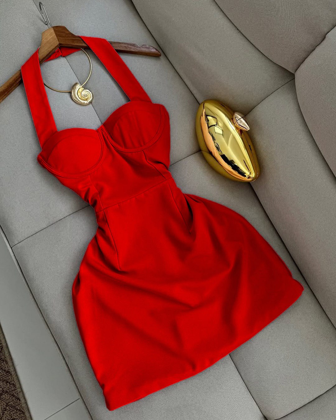 Головна » Магазин » Одяг » Сукня туніка сарафані » Женское мини платье (брители застегиваются на шее) красный