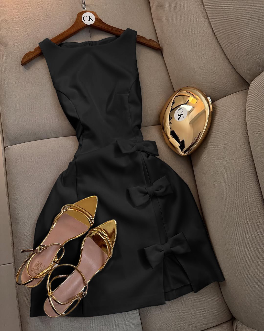 Головна » Магазин » Одяг » Сукня туніка сарафані » Женское мини платье с бантиками (молния на спинке) черный