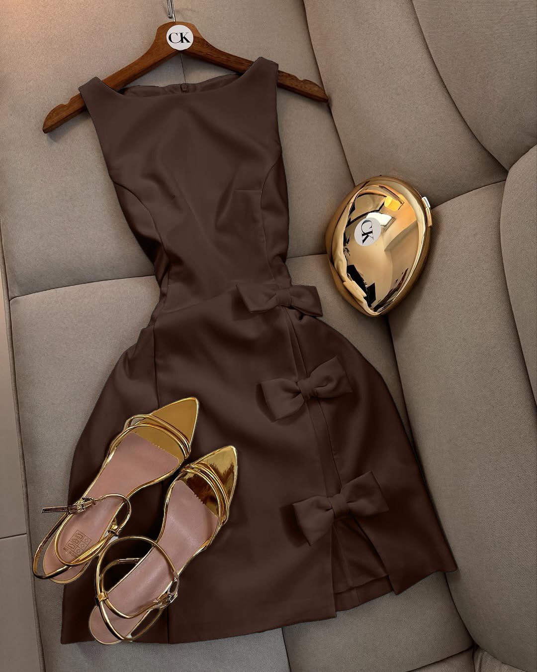 Головна » Магазин » Одяг » Сукня туніка сарафані » Женское мини платье с бантиками (молния на спинке) шоколад