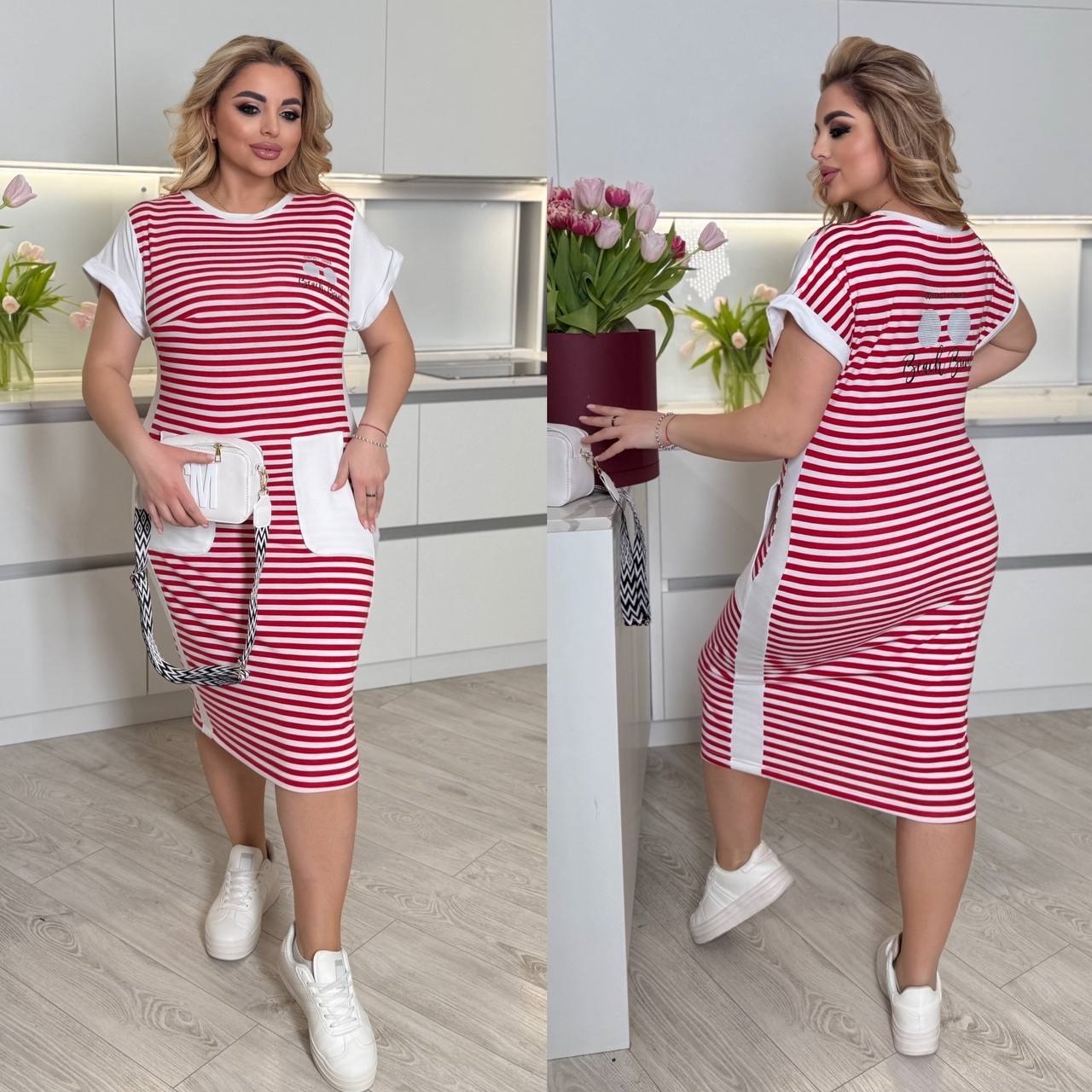 Головна » Магазин » Одяг » Сукня туніка сарафані » Женское полосатое платье с карманами красный