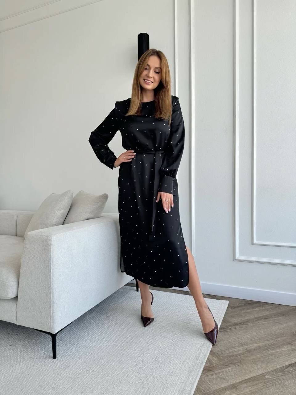 Женское шелковое платье с разрезом по ножке+ремень черный
