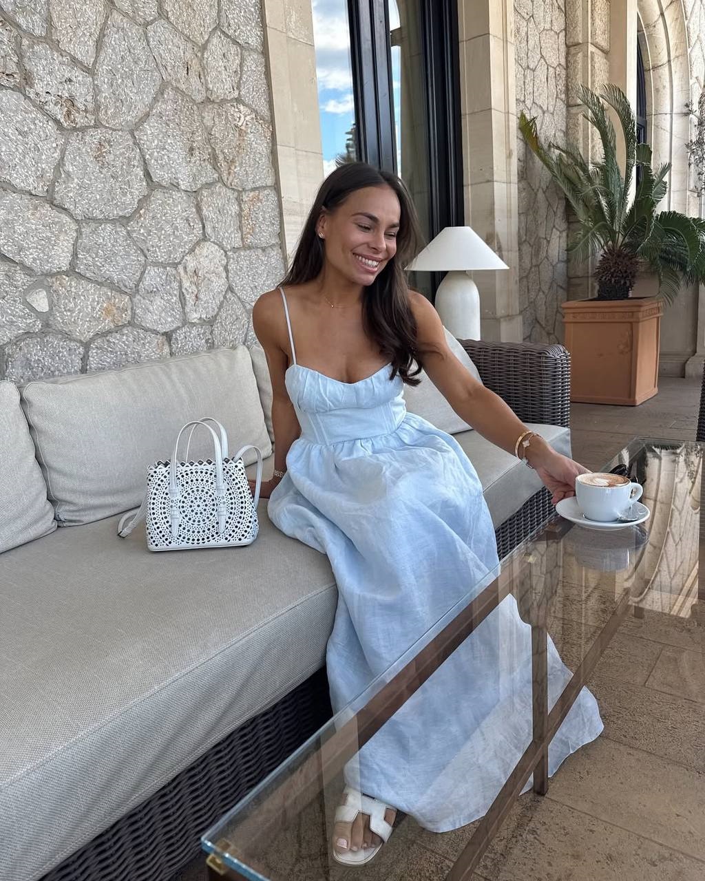 Головна » Магазин » Одяг » Сукня туніка сарафані » Женственное Платье на бретелях длиной макси голубой
