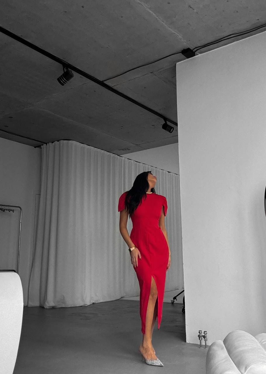 Головна » Магазин » Одяг » Сукня туніка сарафані » Женственное платье приталенного силуэта с разрезом по ножке+завышенной талией красный