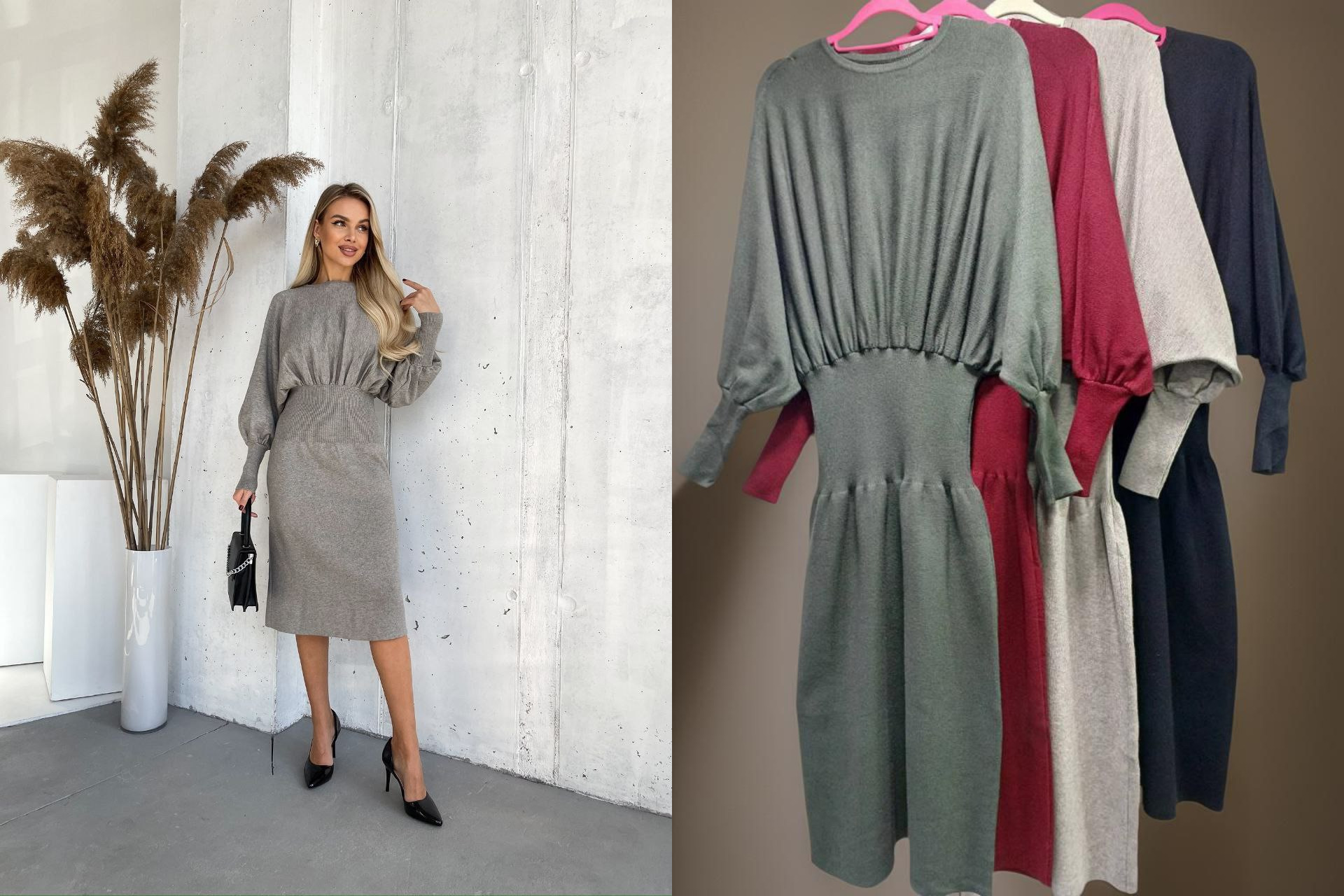 Женственное платье с акцентной талией на резинке кашемир меланж
