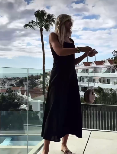 Головна » Магазин » Одяг » Сукня туніка сарафані » Женственное Платье сарафан с разрезом по ножке лен черный