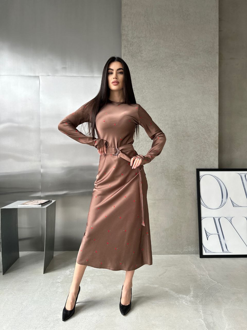 Будьте першим, хто залишив відгук “Женственное шелковое платье миди мелкий цветочный принт шоколад”“