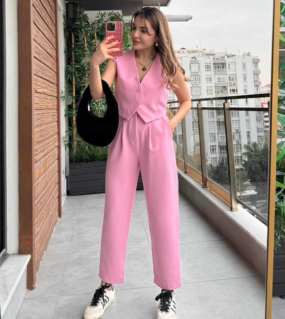 Женственный костюм (брюки +жилет) розовый