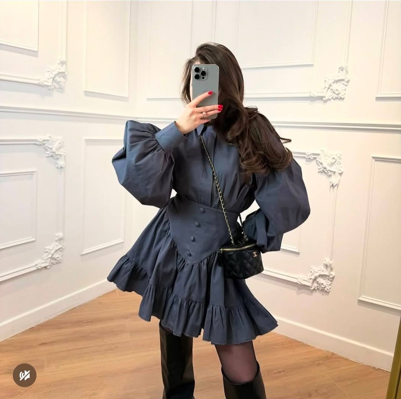 Женственный костюм из коттона поплина (рубашка с пышными рукавами+юбка с оборочкой) графит