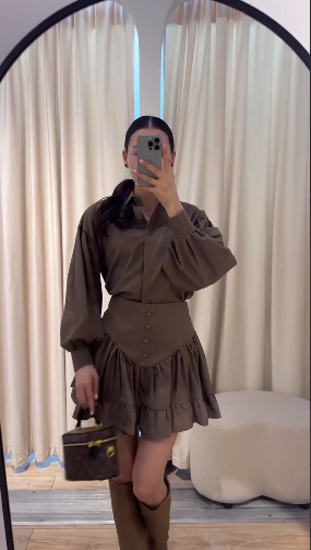 Будьте першим, хто залишив відгук “Женственный костюм из коттона поплина (рубашка с пышными рукавами+юбка с оборочкой) шоколад”“