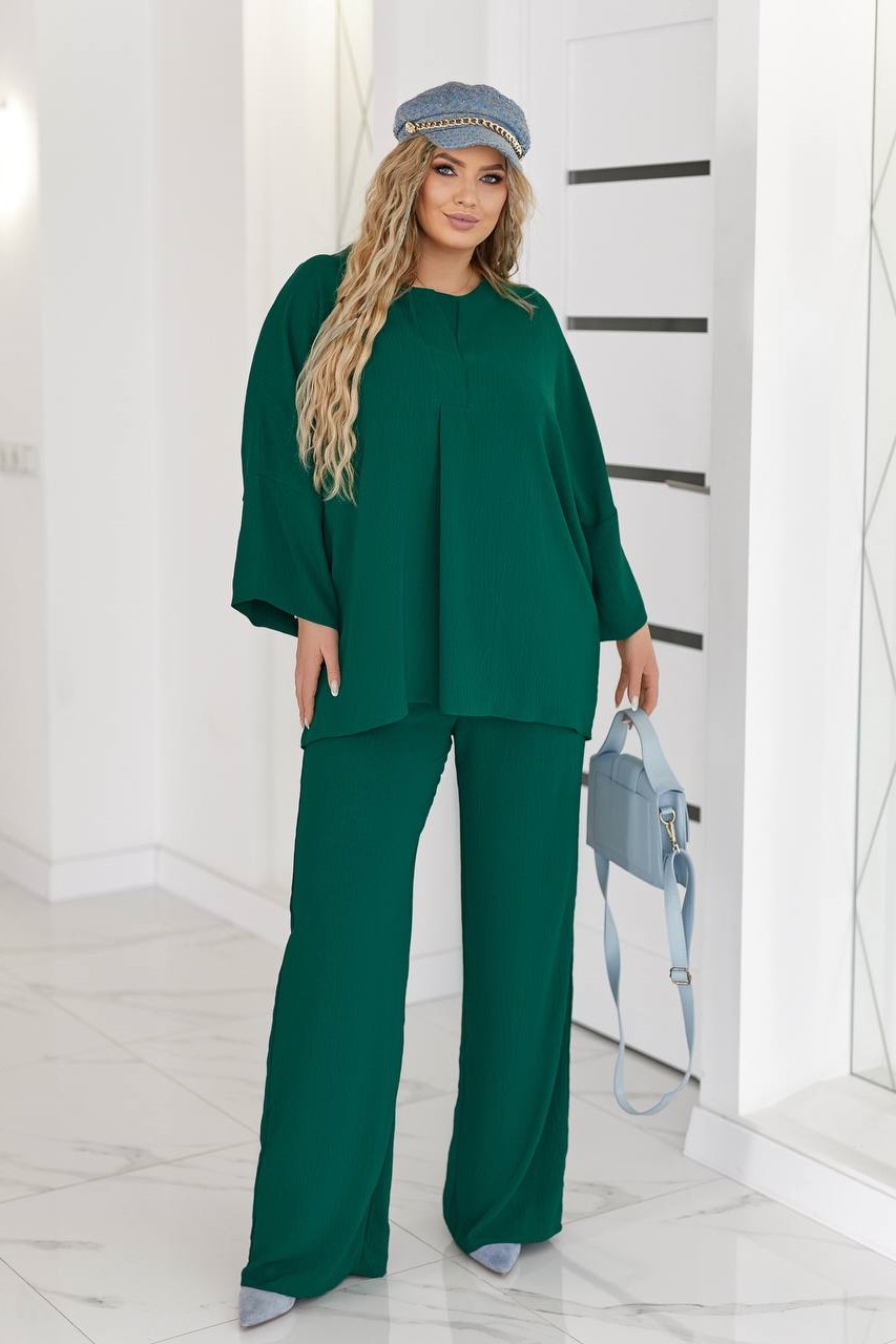 Будьте першим, хто залишив відгук “Женственный Костюм (кофта со спущенным плечом+свободные брюки) изумруд”“