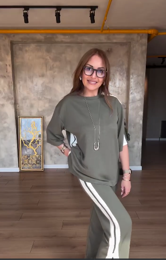 Головна » Магазин » Одяг » Жіночі костюми » Женственный костюм с лампасами (футболка с боковыми разрезами+брюки) олива