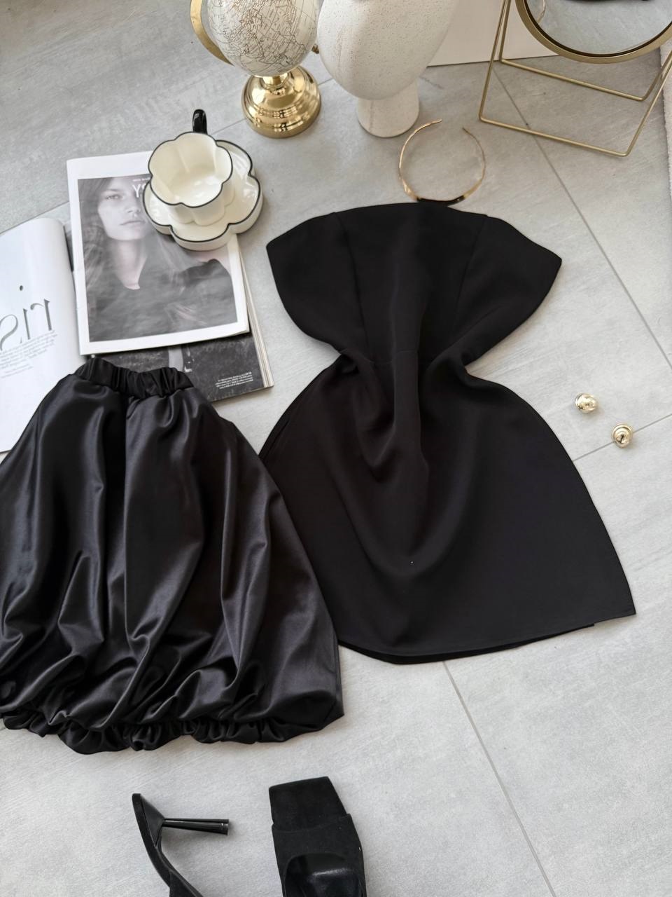 Женственный Костюм (топ из костюмки+атласная юбка) черный