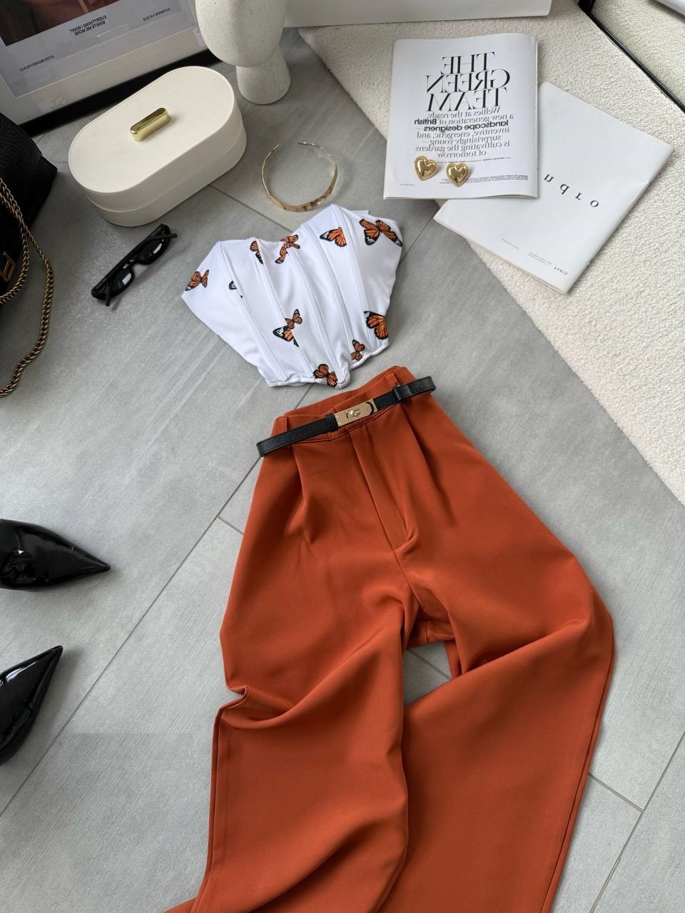 Головна » Магазин » Одяг » Жіночі костюми » Женственный костюм (топ с бабочками+свободные брюки) кирпичный