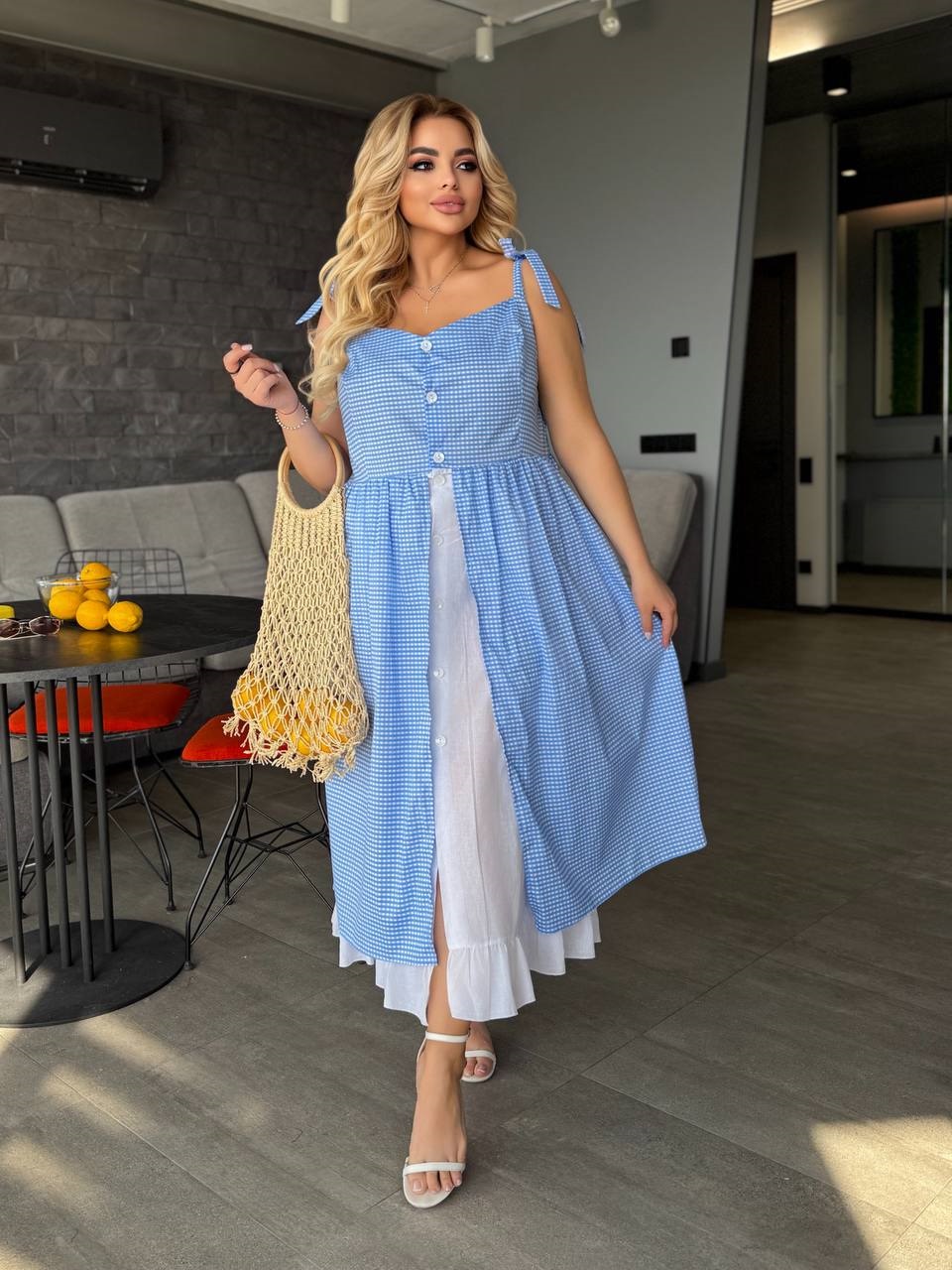 Головна » Магазин » Одяг » Сукня туніка сарафані » Женственный сарафан в клетку с акцентным нижним слоем коттон голубой