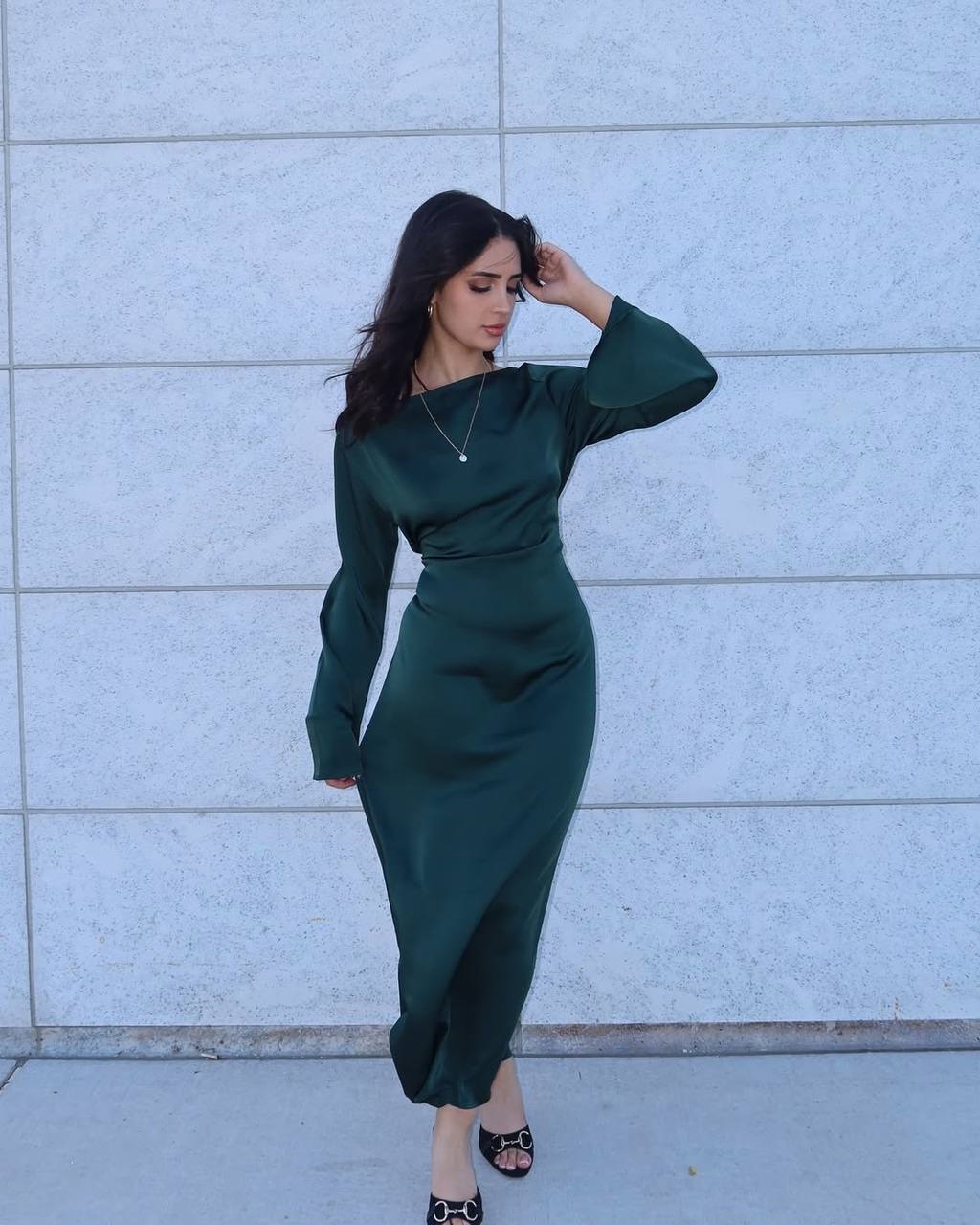 Женственный шелковое платье длиной макси силуэта А со шнуровкой по спинке зеленый