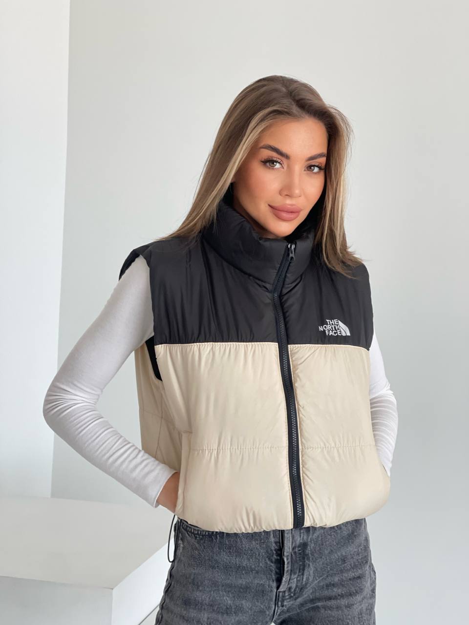Жилет на молнии с карманами+накатом бежевый
