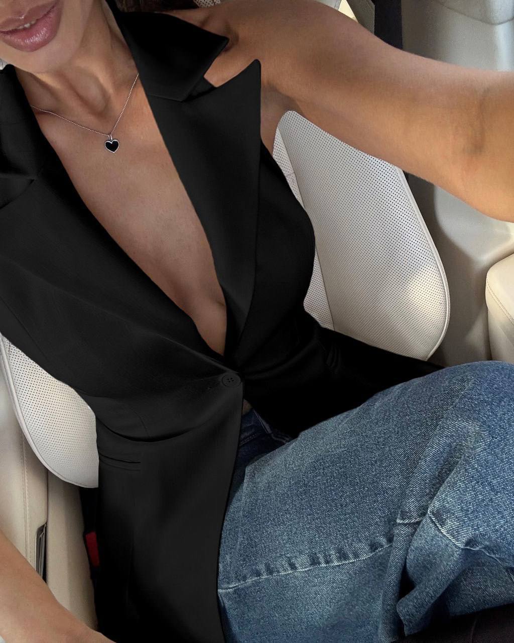 Головна » Магазин » Одяг » Жіночі жилети » Жилет с открытой спинкой без подкладки черный