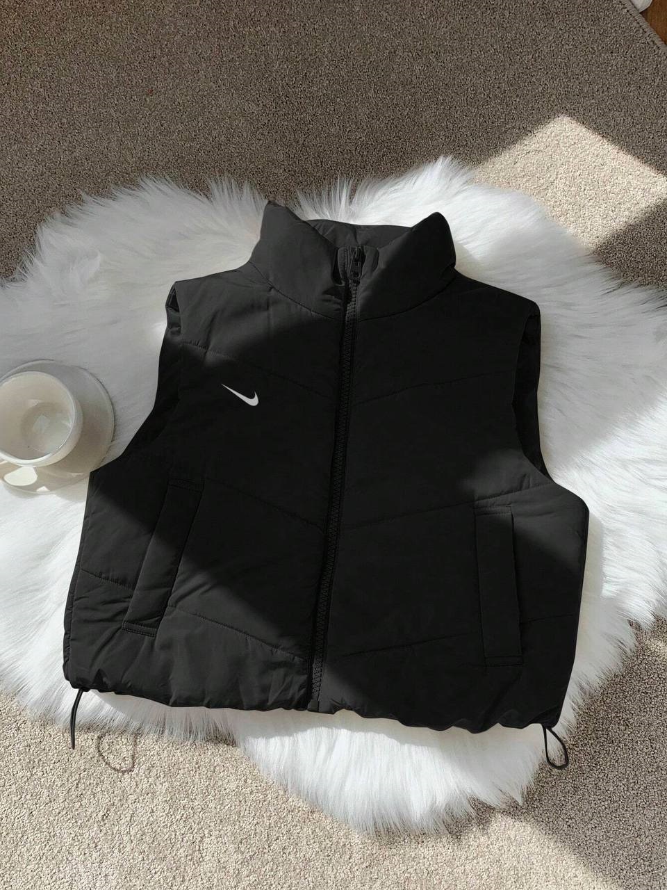 Жилетка укорочена с карманами на молнии+воротничок стойка с логотипом черный