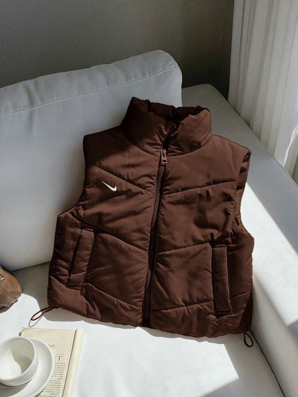 Жилетка укорочена с карманами на молнии+воротничок стойка с логотипом шоколад